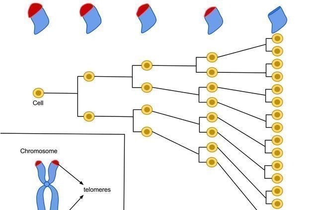 到底是什么影响了细胞分裂极限次数?1960年代的海弗利克只是发现了人类细胞分裂极限,为什么会有极限则一直都搞不清楚!一直到1980年代科学家们对于染色体末端的端粒(telomere)结构的认识才有了突破性的进展,他们发现,当细胞每分裂一次,端粒就会变短一点点!