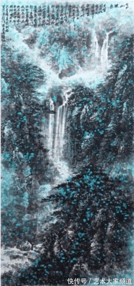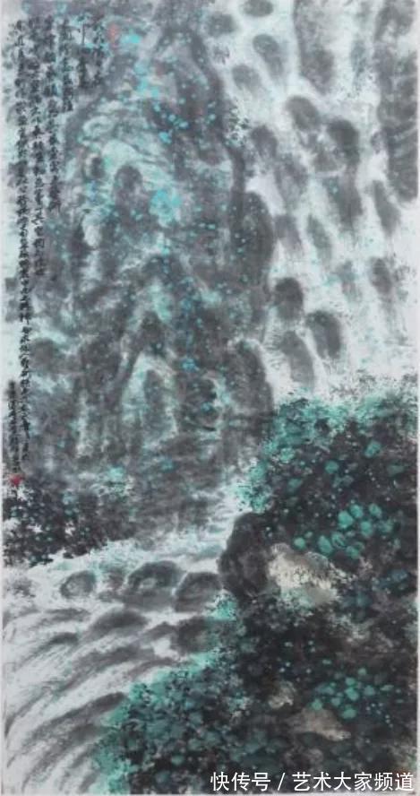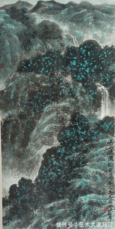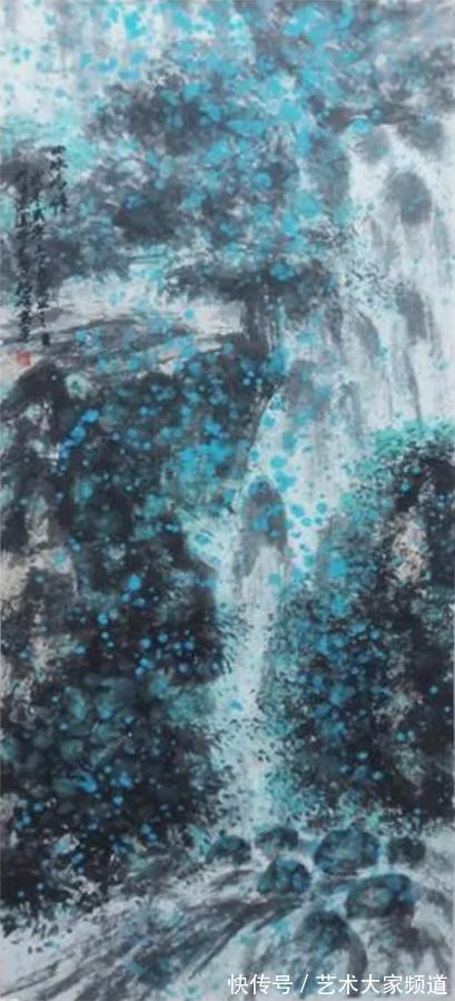 扬岭南一派,写中国意象。岭南一派山水色彩渲染流丽,可作水泽丰润的意象。刘毅峰先生画山水,就精于此道,水调色彩相当苍润,青绿有色泽感,也有光影质。厚重不板,飞逸不飘,山水自然,如置物于眼前!中国“文人画”的“尚意”精神内涵,经由色彩的流丽渲染,砰然而生,可有一天清淑气,万里碧榆风的气韵生动!唯有兼通“中西画法”,才可以把岭南一派做出如此玄机高妙的新表达,搜尽奇峰打草稿,中西兼和融合,先生画山水谓之能、谓之贤,可以把丹青文化龙脉做出有创意的拓展,作品皆是金画绵质,意象佳作,文化上品!