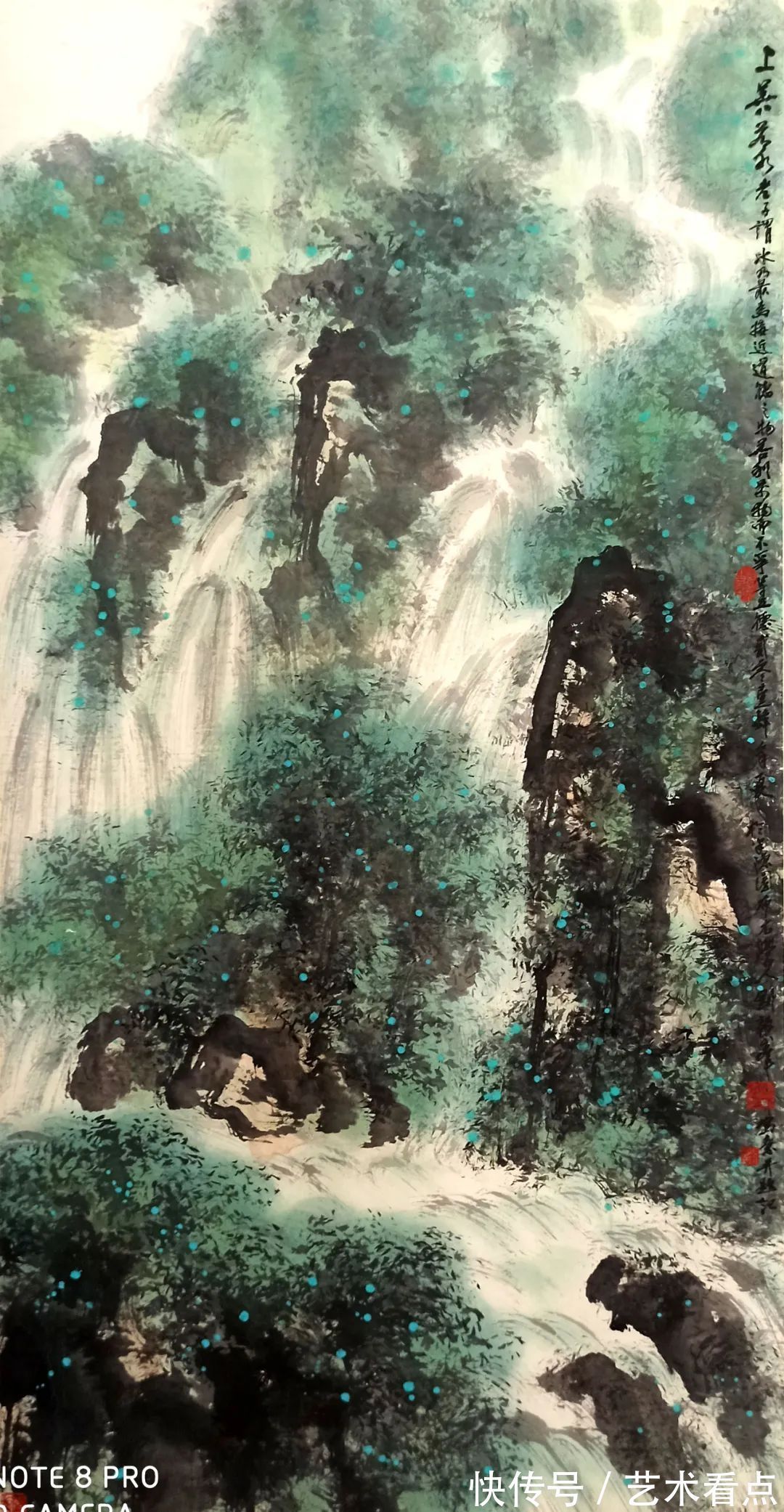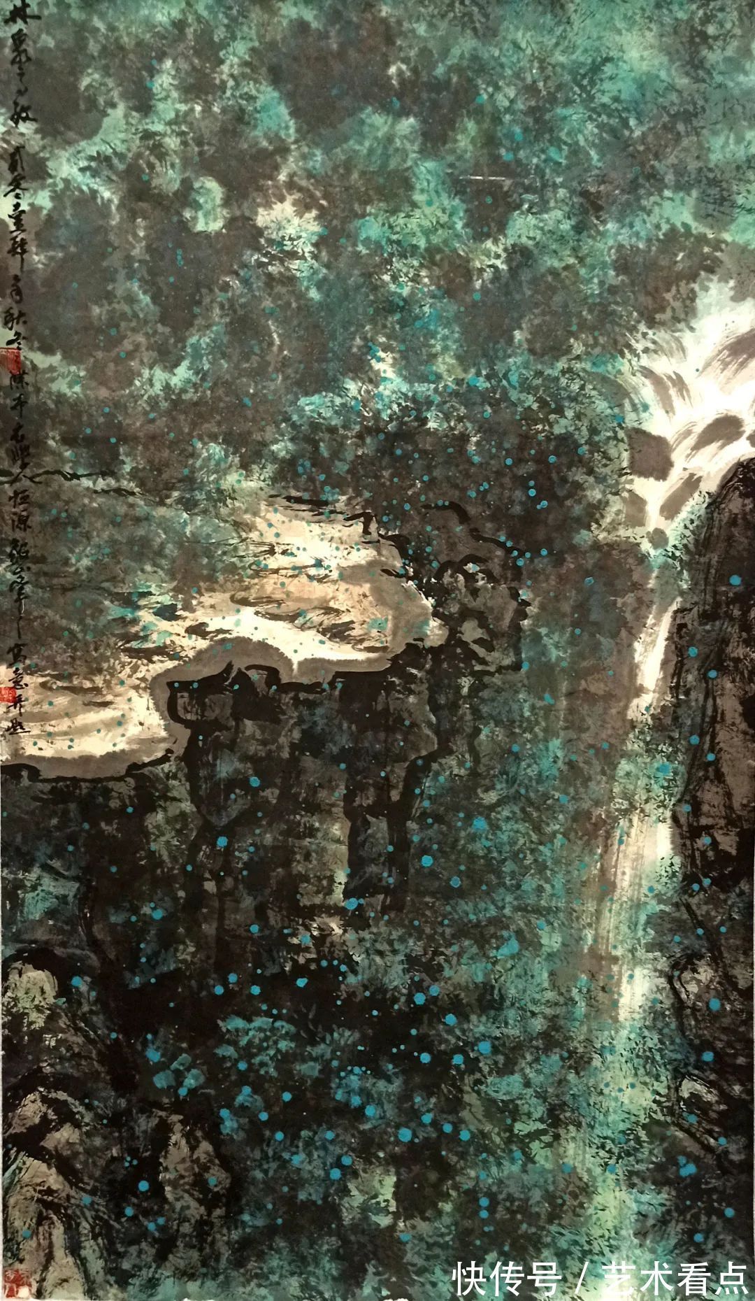 ? ?扬岭南一派,写中国意象。岭南一派山水色彩渲染流丽,可作水泽丰润的意象。刘毅峰先生画山水,就精于此道,水调色彩相当苍润,青绿有色泽感,也有光影质。厚重不板,飞逸不飘,山水自然,如置物于眼前!中国“文人画”的“尚意”精神内涵,经由色彩的流丽渲染,砰然而生,可有一天清淑气,万里碧榆风的气韵生动!唯有兼通“中西画法”,才可以把岭南一派做出如此玄机高妙的新表达,搜尽奇峰打草稿,中西兼和融合,先生画山水谓之能、谓之贤,可以把丹青文化龙脉做出有创意的拓展,作品皆是金画绵质,意象佳作,文化上品!